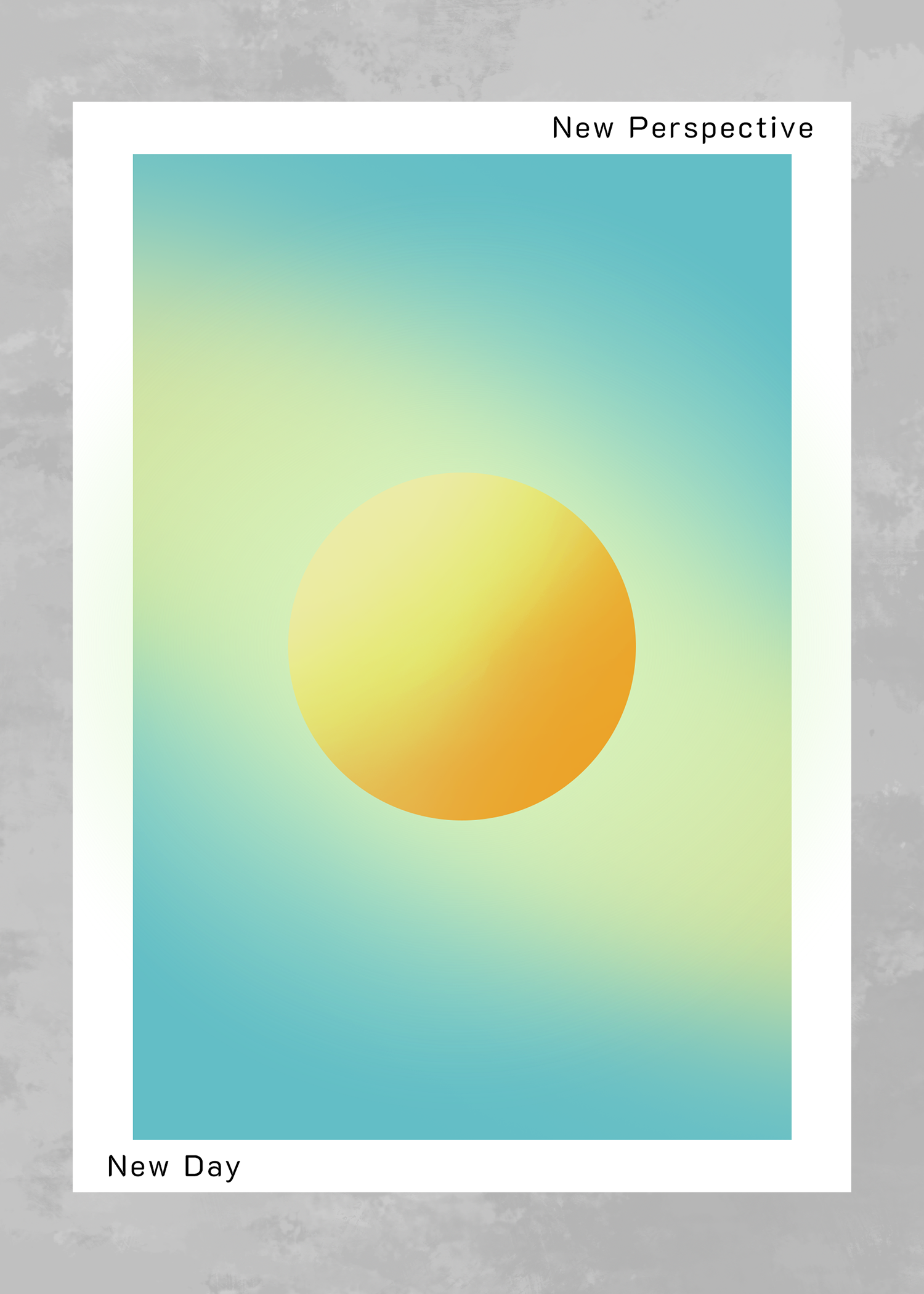 Mold your space with modern design. Aquamarine backdrop with a yellow haze striping through.